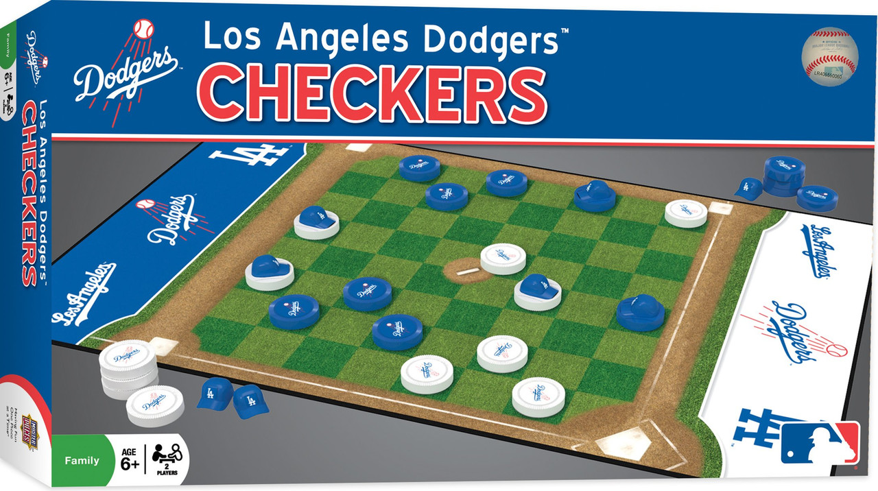 If you're a fan of the Los Angeles Dodgers, then you're going to love this officially licensed MasterPieces MLB Los Angeles Dodgers Checkers Board Game. This classic game of checkers is a ton of fun for children and adults ages 6 and up, and it's a great way to show your Los Angeles Dodgers pride. This checkers game comes with 24 Los Angeles Dodgers checkers pieces, 8 baseball helmet king pieces, a 13 inches x 21.375 inches game board, 1 sticker sheet, and an instruction sheet. So get ready to put your skills to the test and crown yourself the checkers champion!