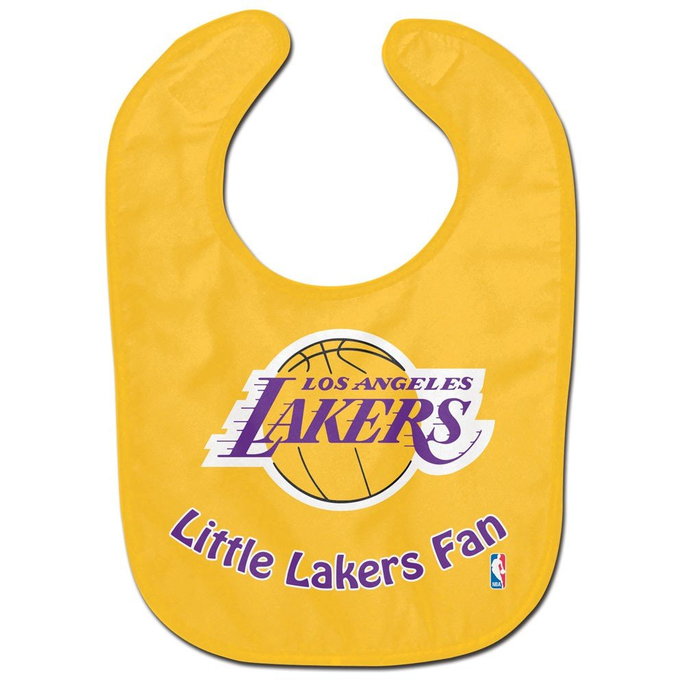 Get your little Lakers fan game-day ready with the Los Angeles Lakers Baby Bib - All Pro Little Fan! This officially licensed NBA bib is made with a soft polyester front and absorbent cotton terry back, ensuring both comfort and functionality. With a fun full-color imprint and adjustable baby velcro, it's the perfect way to show off your little one's team spirit. Made by Wincraft, Inc. and proudly printed in the USA. Gear up your future Lakers star today!